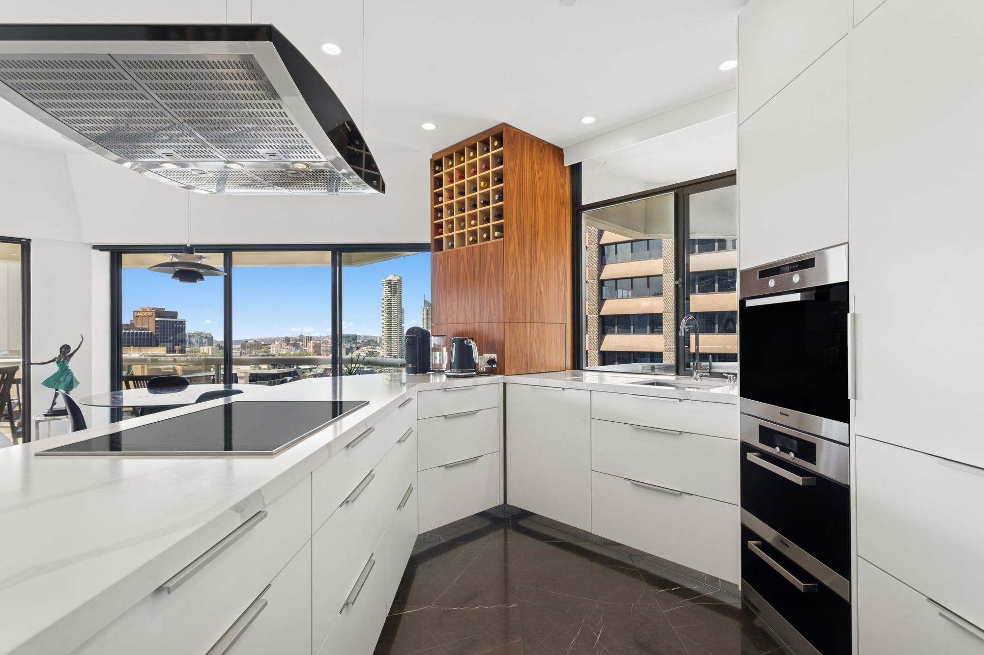 - Open-plan living and dining areas flow seamlessly to an expansive balcony
