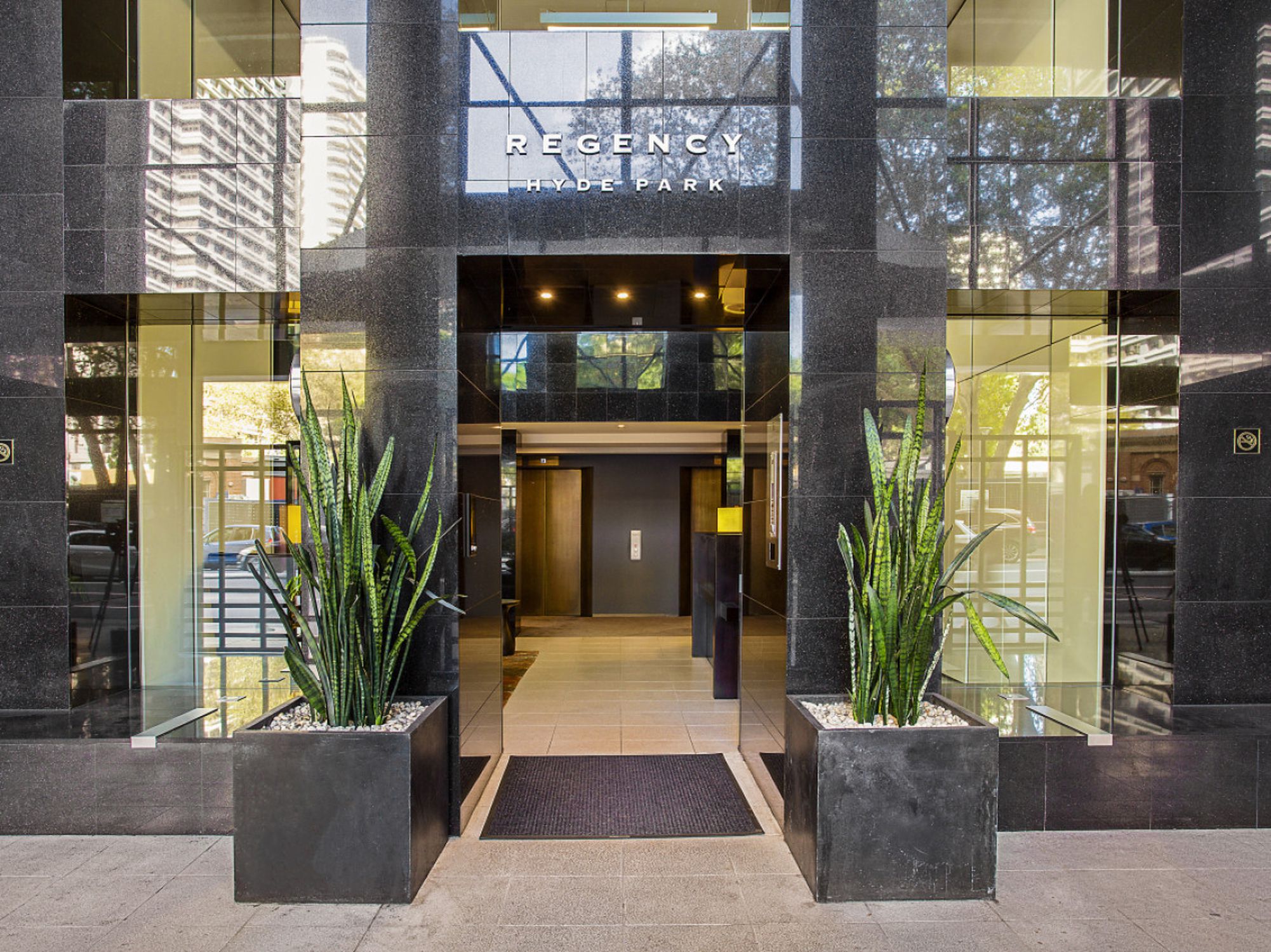 Regency Hyde Park is a highly desirable residential building positioned on Elizabeth Street, opposite Hyde Park, with 24hr concierge, onsite building manager, indoor pool, spa, sauna and gymnasium.