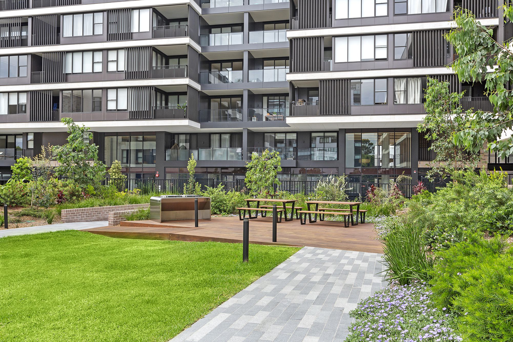 Residents enjoy access to communal gardens, pool and BBQ area